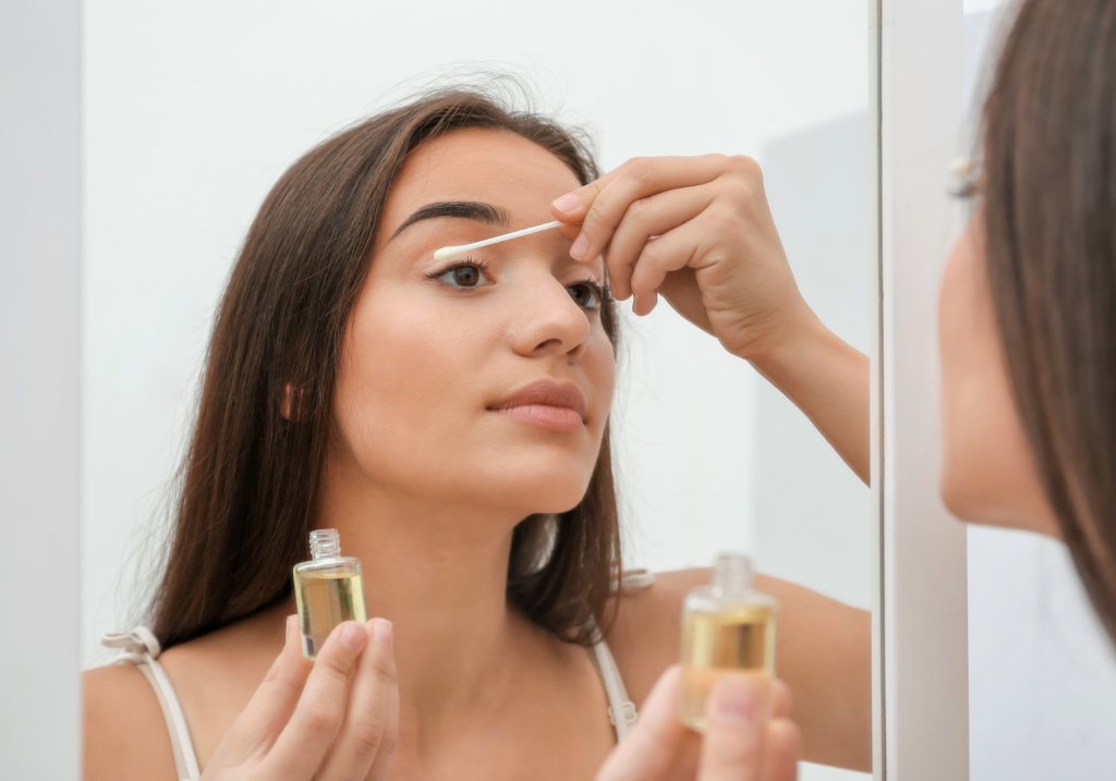 Tragen Sie dieses hausgemachte Serum zweimal täglich, einmal morgens und einmal abends vor dem Schlafengehen, mit einem Mascara-Applikator oder einem Wattestäbchen auf Ihre Wimpern und Augenbrauen auf.